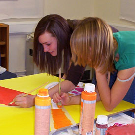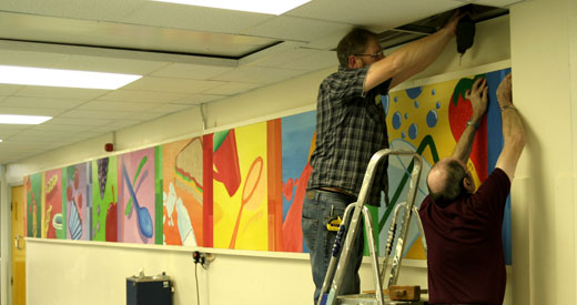 Die Kunst hat das Handwerk nötiger, als das Handwerk die Kunst. Franz Kafka Nur was aus dem Leben kommt, ist Kunst, die wieder aufs Leben wirkt. Stefan George ![]() ![]() ![]() ![]() ![]() ![]() ![]() ![]() ![]() ![]() ![]() ![]() ![]() ![]() ![]() ![]() ![]() ![]() ![]() ![]() ![]() ![]() Projekte Bei dem Kunstprojekt für die Mensa in England arbeiteten viele verschiedene Gruppen an der Wand- gestaltung mit. Jeden Tag startete eine neue Gruppe von fünf Jugendlichen mit der Künstlerin, um eine Idee für das Bild zu entwickeln und es gemeinsam zu realisieren. Es entstanden popartige Malereien von fliegenden und schwebenden Muffins, Cakes, Pasta, Sandwiches ... Die quadratischen Bildtafeln und farbigen Streifen wurden zu einem zehn Meter langen Wandfries für die Mensa zusammengefügt. Kooperationspartner : Icknield College, Watlington/Oxfordshire, England LEVITIATION |